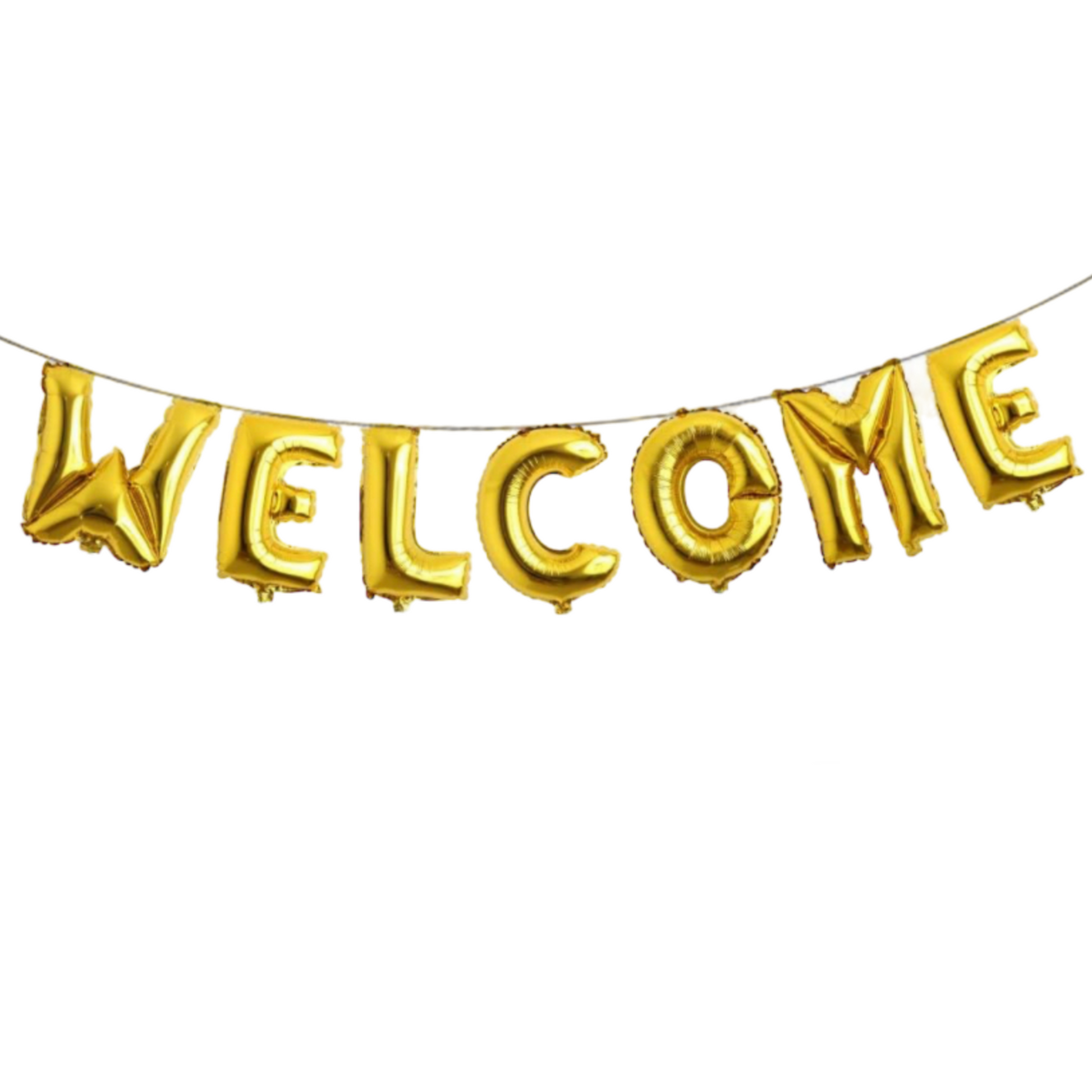 Extend a warm welcome with our Welcome Balloons: The vibrant and inviting balloons that set the tone for a joyful gathering. These balloons feature the word 'Welcome' in cheerful and eye-catching designs, creating a friendly and festive atmosphere for your event.